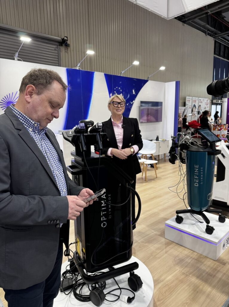 Na stoisku SHAR-POL zaprezentowano aparaty izraelskiej firmy Inmode. Jednym z nich był aparat Define do ujędrniania skóry po silnym odchudzaniu tzw. „twarzy ozempikowej”. Jest to aparat nie wymagający ciągłego zaangażowania operatora w trakcie zabiegu. Firma Inmode wychodząc naprzeciw wzrastającemu zainteresowaniu procedur ujędrniających znacznie obniżyła cenę Define.