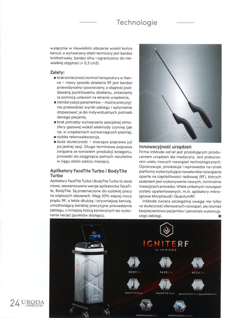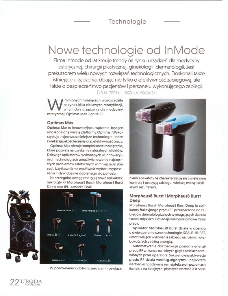 Izraelska firma Inmode pod koniec 2024r wprowadziła na rynek dwa urządzenia dla medycyny estetycznej: Opimas Max i Ignite RF