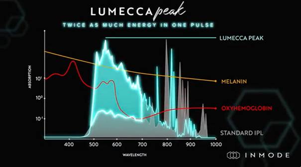 LumeccaPeak to nowa wersja IPL Lumecca. W porównaniu ze swoją poprzedniczką ma moc optyczną większą o 25% i krótszy czas trwania impulsu, co zapewnia szybsze rezultaty w leczeniu zmian naczyniowych i pigmentacyjnych, naczyń powierzchniowych i uszkodzeń posłonecznych u osób o jasnym i ciemnym odcieniu skóry.
